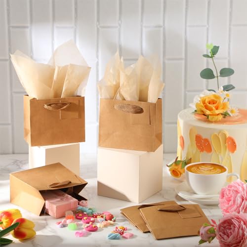 - Sufficient Quantity for Gift Wrapping: the package includes 50 pieces of brown gift bags with handles and gift tags, as well as 50 pieces of brown tissue paper, providing enough quantity for gift wrapping; Each gift bag is made of quality brown cardboard and measures approximately 4 x 2.36 x 4.7 inches/ 10 x 6 x 12 cm, which is good for most small items; The tissue papers measure approximately 27.6 x 19.7 inches/ 70 x 50 cm, which is large enough to wrap most