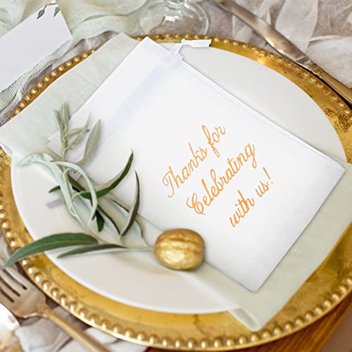 - Elegant and Practical: these drawstring organza bags have a white appearance and are printed with gold stamping words 'Thanks for celebrating with us', simple and attractive; The design of the drawstring can prevent your contents from falling off, and your gift will be very beautiful inside