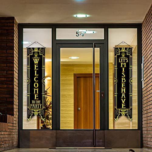 - Reliable for 1920s party: 1920s party decorations porch sign banners are made of quality pongee with vibrant printing, not easy to fade, stable and not easy to break, safe and reliable; With secure ropes, they won't get blown and twisted with the slightest breeze, so they are nice for 1920s party decorations