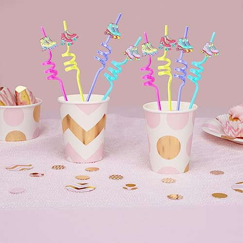 - Roller Skate Party Straws: This roller skating party favors include 4 colors and 4 patterns, 6 pieces for each style and color, 24 pieces in total. Sufficient quantity will be enough for birthday party decoration and use. These lovely straws could add more atmosphere to your party and bring you much fun