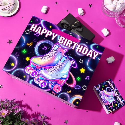 - Roller Skating Party Supplies: You will get 1 large roller skating birthday gift bag, 3 pieces of roller skate wrapping paper, and 1 birthday greeting card with roller skate theme pattern on it. You can write your blessings on the greeting cards to meet your skating birthday decoration needs and make your celebrations more colorful