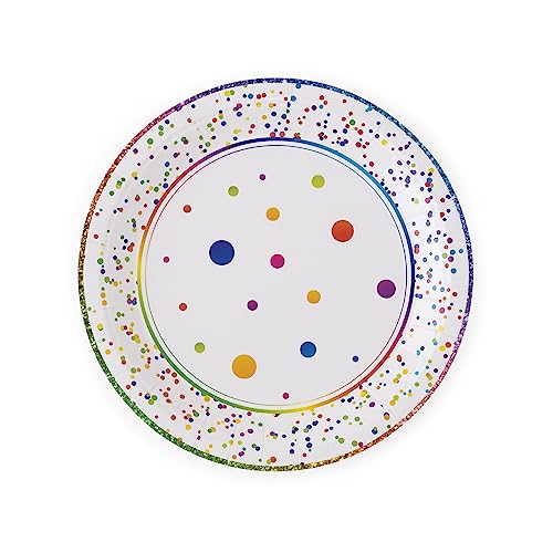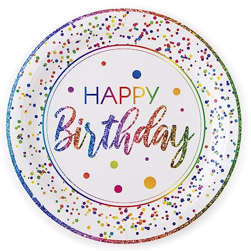 - Service for 24 Rainbow Party Supplies – Enjoy rainbow party plates for 24 invited guests with this premium set of Happy Birthday party supplies! The set includes 9 inch dinner plates, 7 inch salad/dessert plates, 8 oz cups and 3-ply folding napkins.