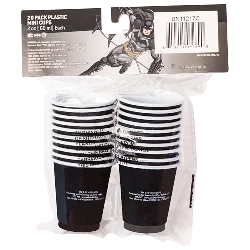 - MINI PARTY CUP SET: Set contains twenty 2-ounce mini cups that feature the timeless Batman logo in black and yellow
