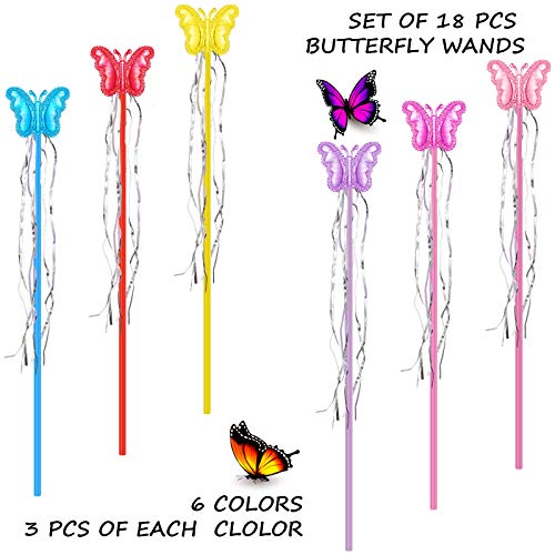 - What you'll get: package comes with 18 pieces different colored butterfly fairy wand, in a total of 6 colors, 3 pieces of each color; Each butterfly fairy wand is 13 inches long, enough quantity to share as a gift to your friends; You can go to the princess party together, and you will become the most cute little princess at the party