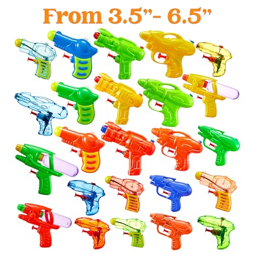 - MIGHTY MINIS: Unleash the fun with this set of 24 small water guns, perfect for tiny hands and ensuring a plethora of soaking surprises.