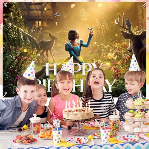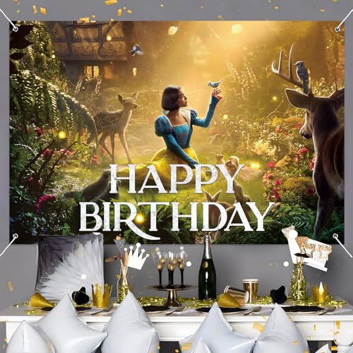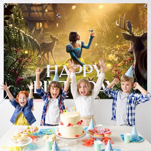 - Snow Birthday Party Decorations Backdrop Banner Princess Theme Garden Plants Deer Design Background for Happy Birthday Decorations Backdrop Party Supplies