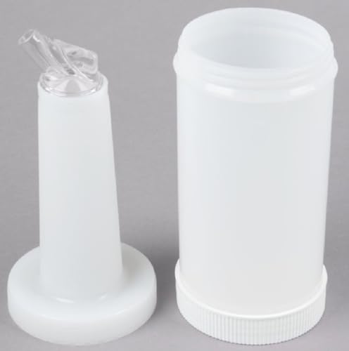 - This product offers you an economical solution for efficiently storing and pouring whether your employees are making drinks at the bar or pouring batters and oils in back-of-the-house applications. The container is made of high-density plastic for long-lasting use and the neck gives your employees a secure grip as they pour drinks for customers.