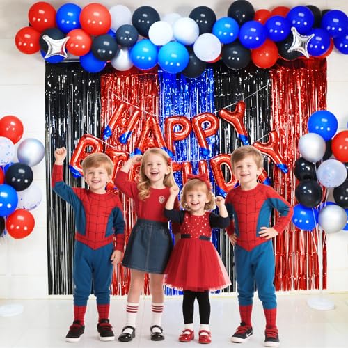 Spider Theme Happy Birthday Banner Party Decorations Blue and Red Foil Balloons Letters Signs Superhero Party Supplies for Boy