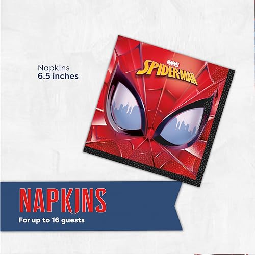 - INCLUDES: This Spiderman plates and napkins set includes enough Spiderman birthday plates and napkins to host a party of 16 guests: 16 large 9" plates, 16 paper napkins, and 1 "It's My Birthday" sticker.