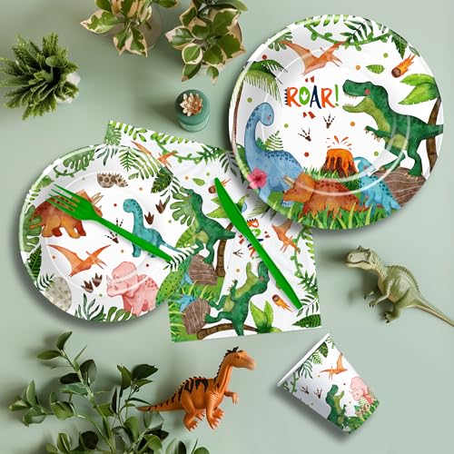 - 【Quality Materials】Made from quality paper materials, this Dino birthday party supplies is enough to hold snacks, cake, and drinks without tearing or leaking, and is fully disposable for fast, hassle-free cleanup