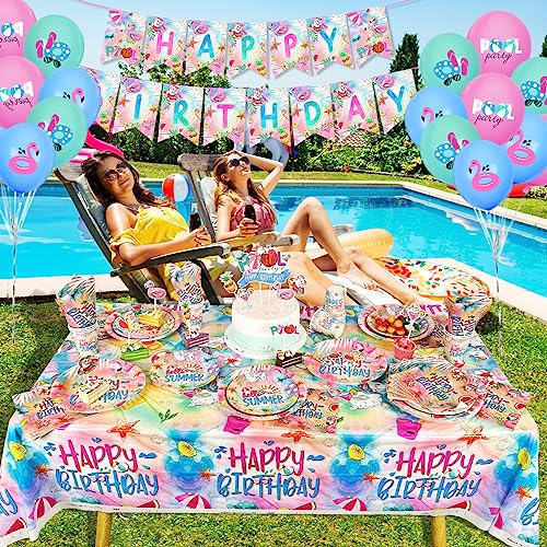 - SUITABLE FOR MANY OCCASIONS: Pool hawaiian birthday party decorations suitable for girls' birthday parties, beach party, pool party, summer party, swim party, surfing party, etc. The beach ball party tableware set is perfect for all kinds of occasions, leaving a deep impression on your family and friends