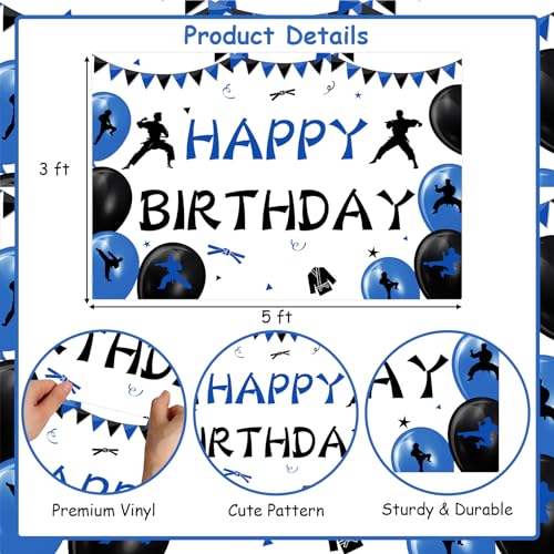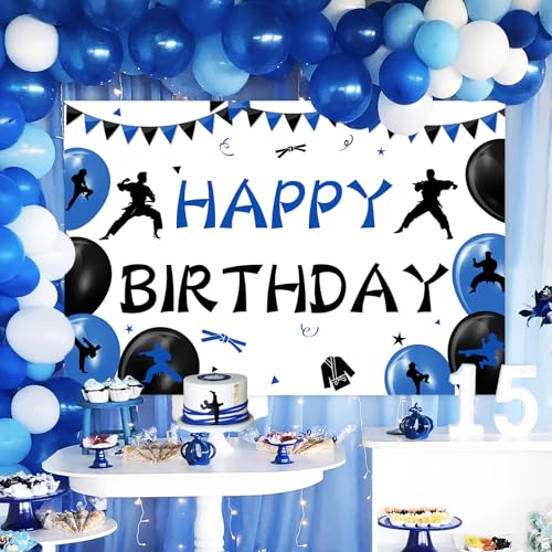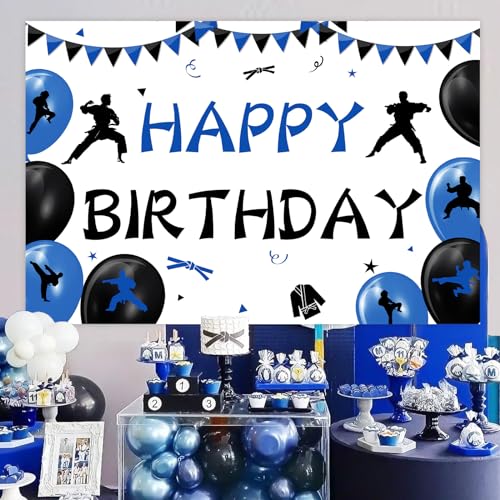 Sursurprise Karate Birthday Decorations, Karate Happy Birthday Backdrop Banner Photography Background Photo Studio Props Blue Black 5 x 3ft for Boys Taekwondo Martial Arts Birthday Party Supplies