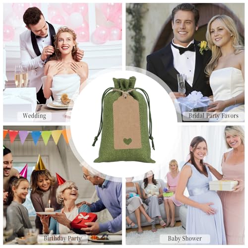 Tapleap Green Small Gift Bags with Drawstring – 30Pcs 4×6 Burlap Sacks for Wrapping Valentine's Day Favors, Soap, Jewelry, Crosses Games, Marble Sets, For Small Business, Birthday, Wedding