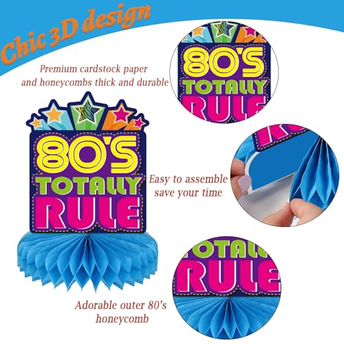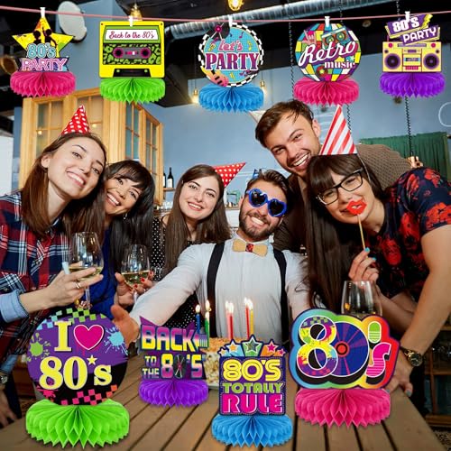 - Great 80's party supplies: these 80's retro table centerpieces exquisitely designed with interesting elements so that everyone will love these chic designs. Decorating your home and party with our honeycomb centerpieces will be a big hit at your party.