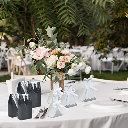 Thenshop 200 Pcs Wedding Favor Boxes – Wedding Party Favor Boxes Bride and Groom Favors Box Creative Treat Bags Bulk Dress Tuxedo Chocolate Candy Gift Box with Ribbon for Guest Bridal Shower Supplies