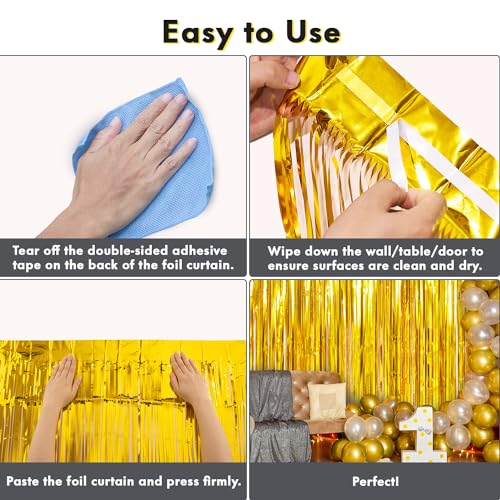 - Easy to apply: with double-sided adhesive tape, just remove it on the back, and stick the foil curtain set on multiple surfaces. You could create a beautiful photo backdrop in seconds, need 2 or more to get a full effect.