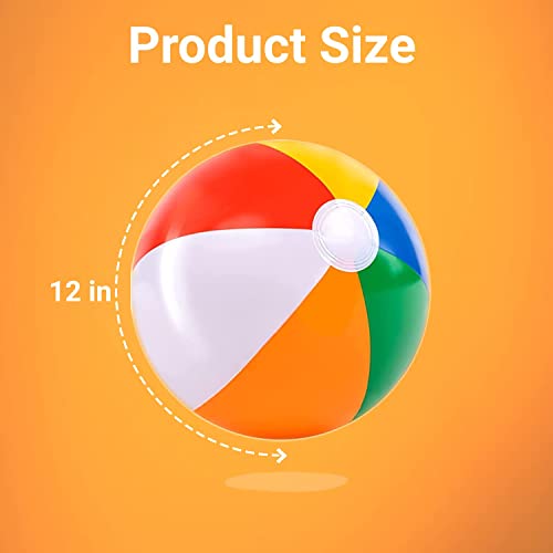 - 【12 Pack】Package includes 12 pcs beach ball which is easy to inflate and deflate. You can use your mouth to blow the beach ball, or you can use the inflatable pump to blow it. They are 12 inches before inflation and 8 inches after inflation.