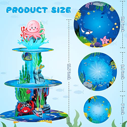 - Suitable Size: this Under the Sea Party cupcake stand is about 15.7 inches high, the diameters of the 3 layers of cardboard are about 30 cm/ 11.8 inches, 25 cm/ 9.8 inches and 18 cm/ 7.1 inches, the height between the two layers is high enough to allow you to place multiple cupcakes on each layer, both decorative and functional, suitable for Under the Sea Party