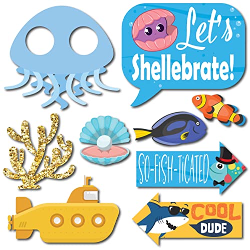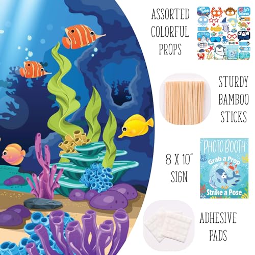 - Get the Perfect Under the Sea Selfies: These funny ocean photo booth props are the perfect addition to your under the sea party decor. Includes 40 props, one 8"x10" sign, 60 adhesive pads, and 45 sticks.