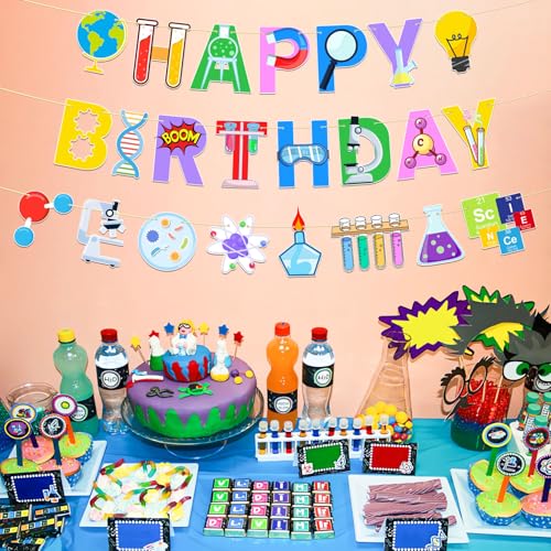 - Science Birthday Decorations: The package includes 1 HAPPY BIRTHDAY banner, 1 experimental equipment patterns banner. It is made of high quality cardboard clear printing and bright colors, perfect for celebrating the parties.