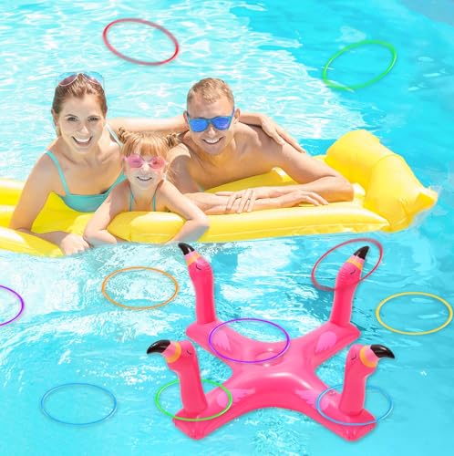 - Pool toys for kids: 1Pc flamingo cross ring toss 6 pcs rings. Easy to play & carry. Not only can Improve children’s Eye-hand Coordination & Concentration Skills, but also help with children’s physical and mental ability.