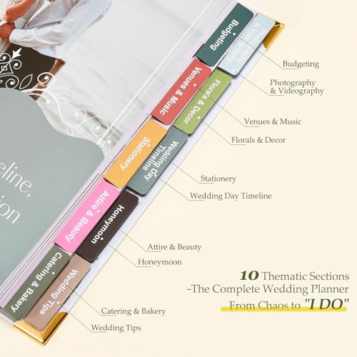 • Organize Every Wedding Detail with Our Wedding Planning Book and Organizer: Step by step guidance for planning your dream wedding from selecting the venue and attire to finalizing the timeline and decor. This planner ensures every detail is covered for your big day