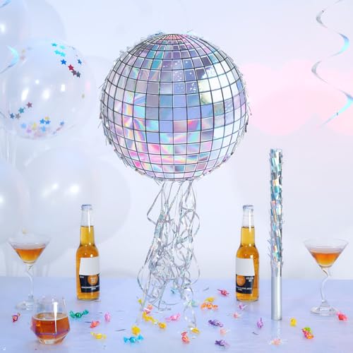 - DISCO PIÑATA – Bring the groove to your celebration with our Disco Ball Piñata! This brilliantly designed piñata mimics the sparkle and shine of a classic disco ball, complete with shimmering silver details. (Please carefully check product image that it is not a sphere.)