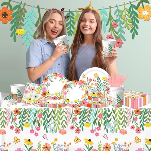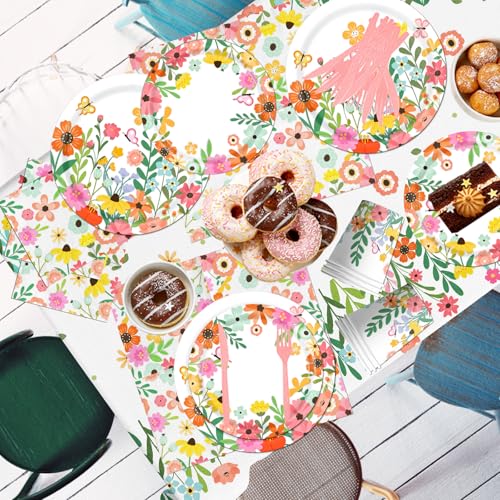 - Wildflower Decorations: This wildflower party decoration includes a flower banner, 24 dinner plates, 24 desert plates, 48 napkins, 24 cups, 24 forks, 24pcs knives and a tablecloth for a birthday celebration