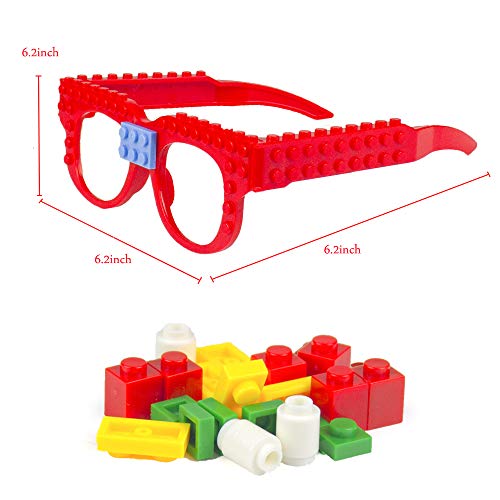 - More Building Blocks Accessories: You will get 9 glasses frames of various colors(3 yellow, 3 red and 3 cyan), and 12 packs of DIY building blocks accessories! Not 9 packs! It's 12 packs! This is unique! This greatly satisfies the needs of DIY creativity, don't worry about missing parts or insufficient accessories!