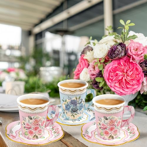 - Popular Party Supplies: For tea party, spring themed parties, birthday, garden, floral party and baby shower and more; These disposal cups and saucers are a wonderful addition to your party and will make your party more memorable