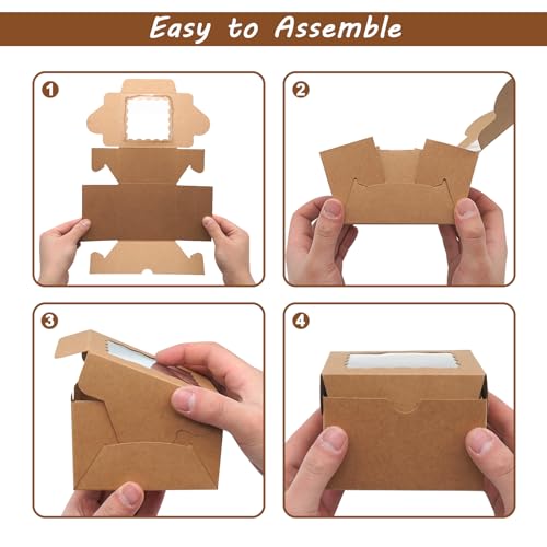 XINHPKGG 50pcs Cookie Boxes 4x4x2.5 Inch Bakery Boxes with Window Treat Box Dessert Box for Wedding Favors Party – Brown