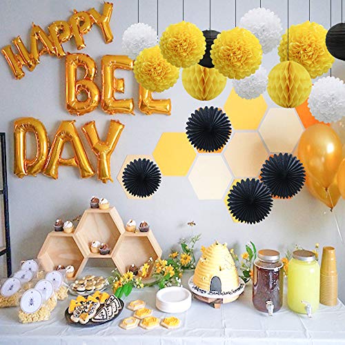 - EASY DECORATING: Our bee party decorations set for parties contains a beautiful selection of items that will guarantee to impress both children and grown-ups. The nice contrast between the three colors will give any room a warm party mood with little to no effort on your part! The pieces require very little of your DYI input, which is also a fun activity for you and the kids