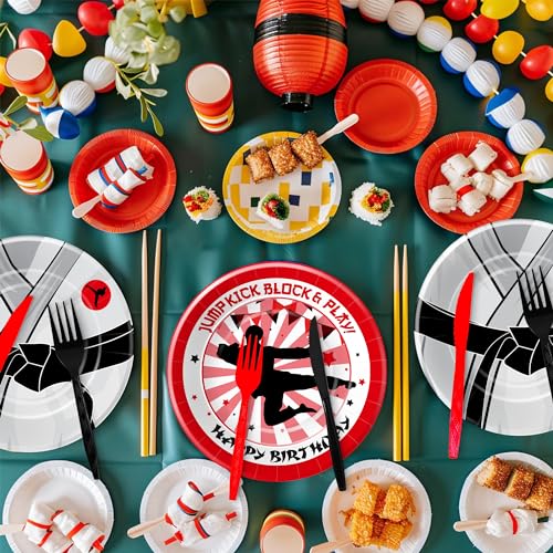 YJRJSC Karate Party Decorations Tableware, Karate Birthday Party Supplies, Paper Plate, Cup, Napkin, Cutlery, Martial Arts Theme Birthday Decorations Paper Plates And Napkins Set, Serves 24