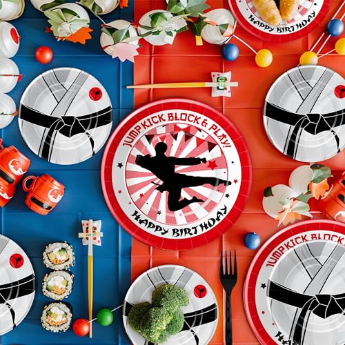 • 【Premium Quality Materials】Crafted from quality materials, this karate party tableware is not just about looks – they are reliable. Sturdy plates and cups ensure that your guests can enjoy their meals without worry, while the napkins and tablecloth add a touch of elegance to the overall presentation