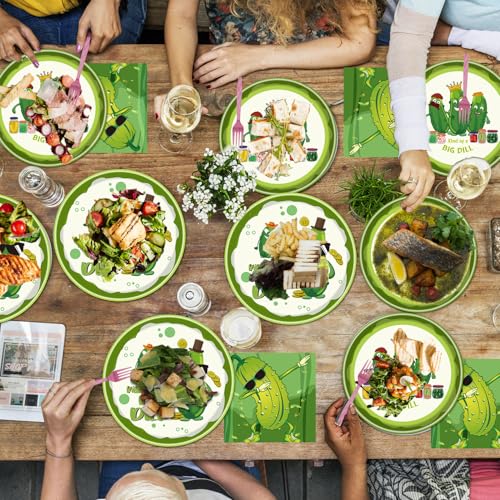• Reliable Material: The pickle themed disposable dinner plate set is made of high quality food grade paper material, sturdy and practical to hold a variety of foods without leaking oil. The paper napkins are equally soft and comfortable! You are sure to be happy and satisfied with the pickle party dinnerware set!