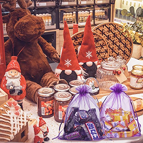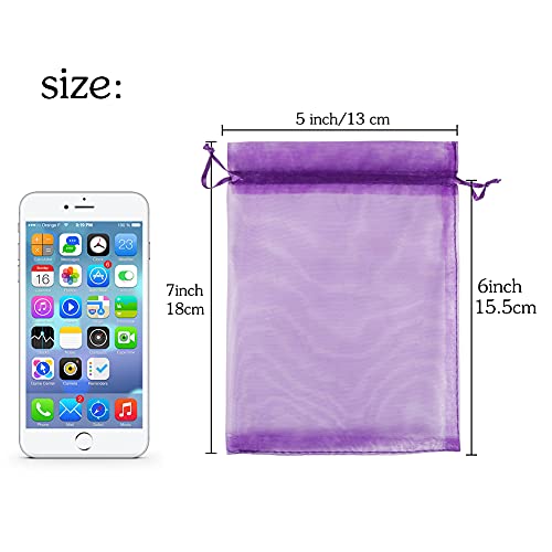 YQL Organza Bags 5×7,100PCS Purple Wedding Favor Drawstring Bags Mesh Fruit Protection Bags Organza Jewelry Pouches Party Valentine Gift