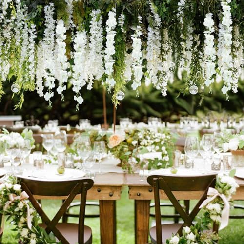 ZINHO 60 Branches Wisteria Hanging Flowers, Artificial White Wisteria Flowers Garland for Wedding Arch Ceremony Party Garden Home Backdrop Decor