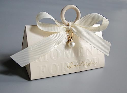 - Gift boxes Made of quality material:Pale beige paper boxes convex press toprint, elegant ribbons hot gold,natural wooden ring,romantic and stylish,Complete your party decor with these favor boxes