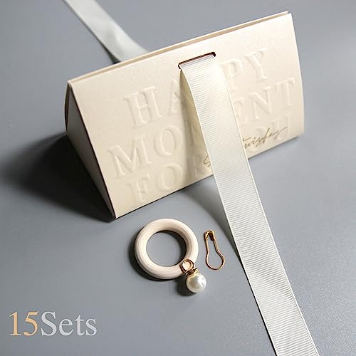 - Small Gift Boxes: There are 15 sets of paper gift boxes with elegant ribbons, pearls, natural wood rings, each storage box measures 5 inches long x 3 inches wide x 3 inches deep, please check the size to meet your needs before purchasing.