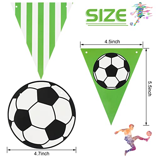 - What you will get: you will receive 2 pieces of soccer-shaped banners, 2 pieces of soccer triangle bunting flag banner, enough quantity for you to decorate your party, and will add that feeling to your party or photoshoot