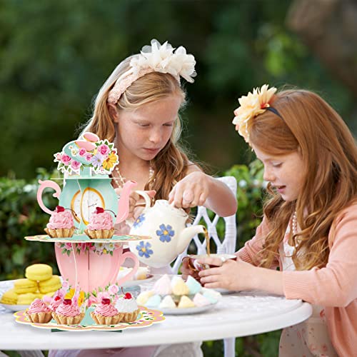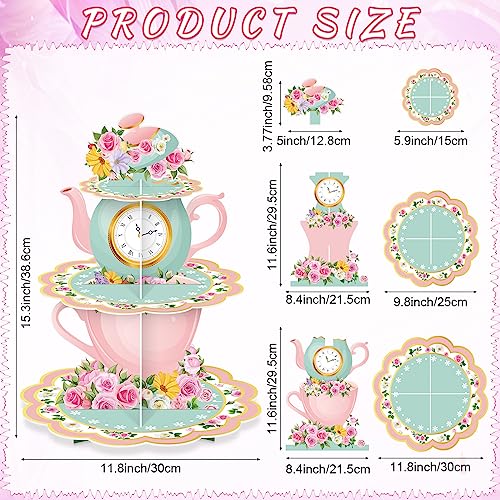 - Quality Material: vintage teapot party cupcake tower party decorations are made of quality sturdy cardboard, sturdy and durable for holding many party desserts, using a double sided printing process, waterproof and reusable, which adds an active atmosphere for your floral tea party, you can also match it with other decorations